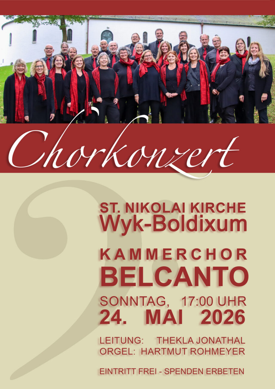 So. 24. Mai 17:00 Uhr Konzert in der Kirche St. Nicolai Wyk-Boldixum